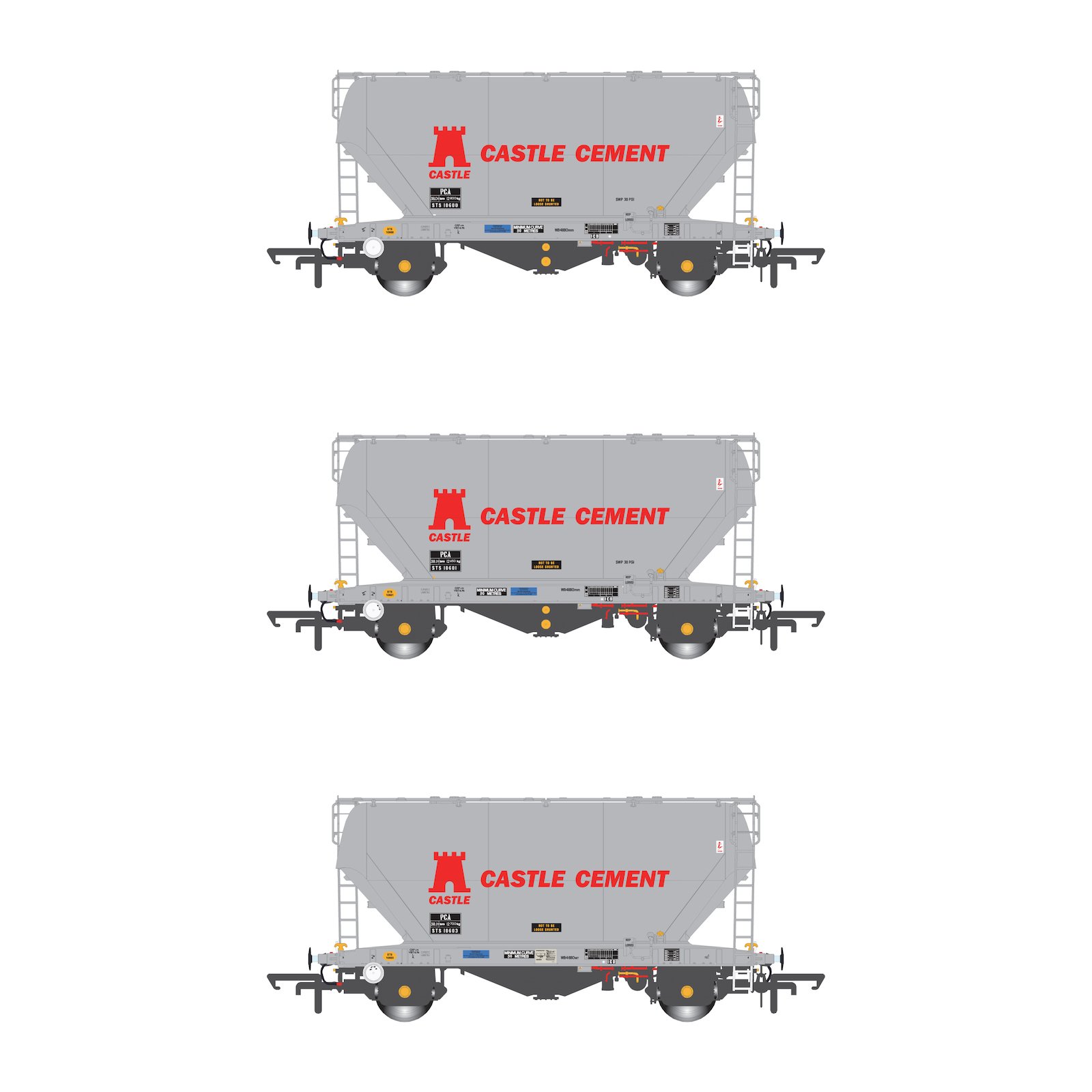 Accurascale ACC2041CS-V : 'Castle Cement' PCA Hoppers, 3-Wagon Pack. Early Livery