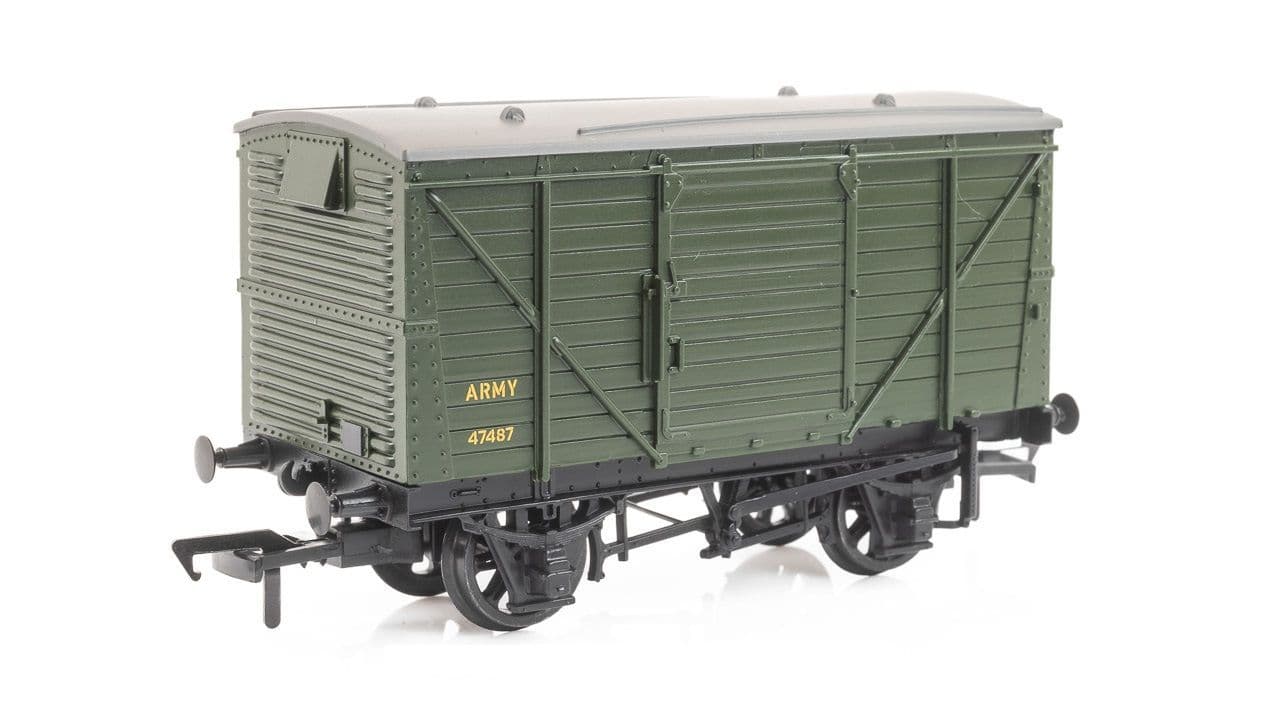 Bachmann 37-806A ex-LMS 12T Planked Ventilated Van, Army Green Livery