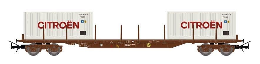 Jouef HJ6310 SNCF 'Rs' 4Axle Stake Wagon with 2 Citroen Containers, , Era IV